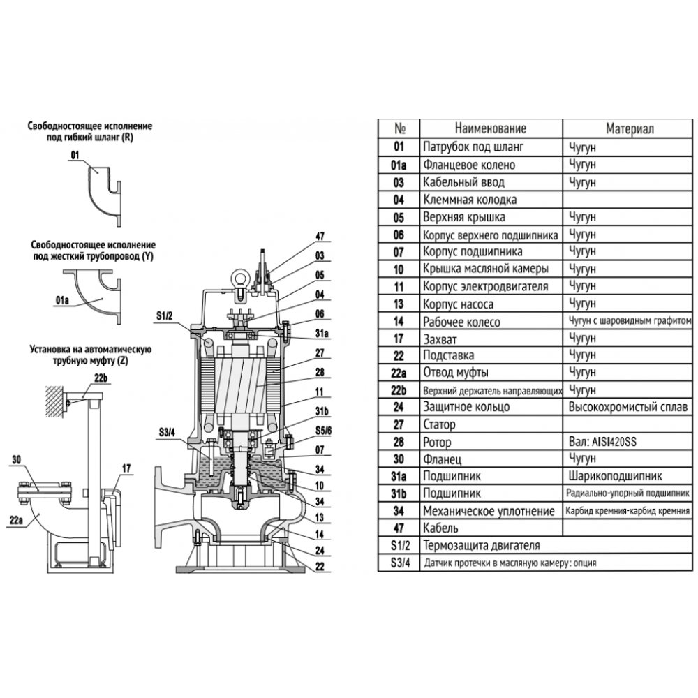 Насос Solidpump серии BS включает в себя канальное рабочее колесо, разработанное специально для канализационных насосов. Рабочее колесо имеет широкий канал, идущий от входного отверстия к выходному, что предотвращает засорение насоса всасываемыми твердыми частицами.