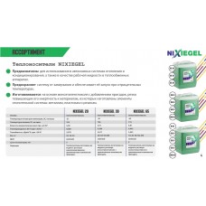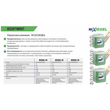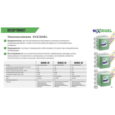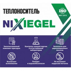 Теплоноситель Nixiegel 20, Nixiegel 30, Nixiegel 65, изготовлен на основе этиленгликоля. При производстве теплоносителей используются экологически безопасные присадки, что существенно снижает загрязнение окружающей среды в случае испарения или протечки. Оригинальный комплект присадок, обеспечивает защиту от пенообразования, накипи и коррозии.