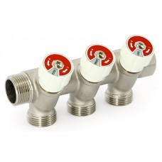 Предназначен для распределения воды в системах водоснабжения. Оснащен шаровыми кранами с двухсторонним цветным кольцом (красн..